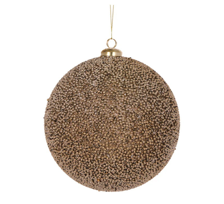Elevate your Christmas tree with this sophisticated 15cm champagne bauble featuring exquisite caviar-style beading. The textured surface creates a stunning light-catching effect, adding depth and luxury to your holiday decor.