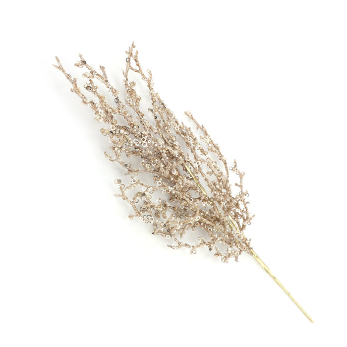 Add a touch of elegance to your decor with this 63cm champagne sequin spray branch. Its shimmering sequins catch the light beautifully, making it perfect for festive arrangements or enhancing any space with subtle sparkle. Easy to incorporate into floral displays or holiday decorations, this decorative branch brings warmth and charm to your setting.