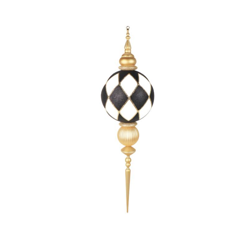 Elevate your décor with this luxurious 1.3m finial, featuring a striking black and white design accented by elegant gold glitter. Its sophisticated style adds a refined touch to any setting, making it perfect for enhancing festive displays or upscale interiors. Crafted to impress, this finial combines classic colors with a shimmering finish for timeless appeal.
