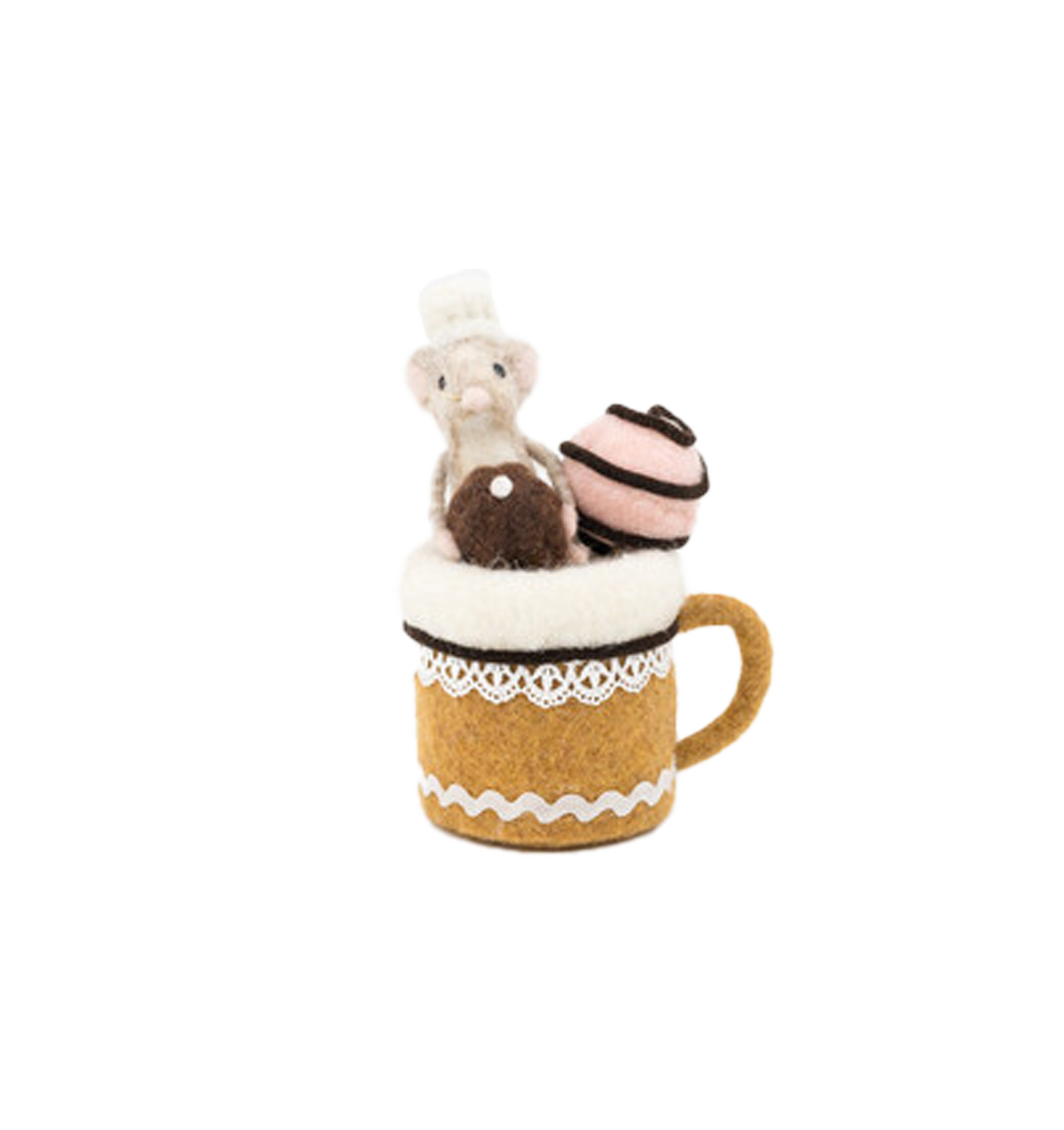 Add a dash of holiday cheer with this playful 16cm Gingerbread Cup Mouse ornament. Perfect for brightening up your Christmas tree or festive displays, this charming little mouse brings a sweet, cosy vibe to your decorations. Its delightful design captures the warmth and whimsy of the season, making it a must-have for spreading holiday joy.