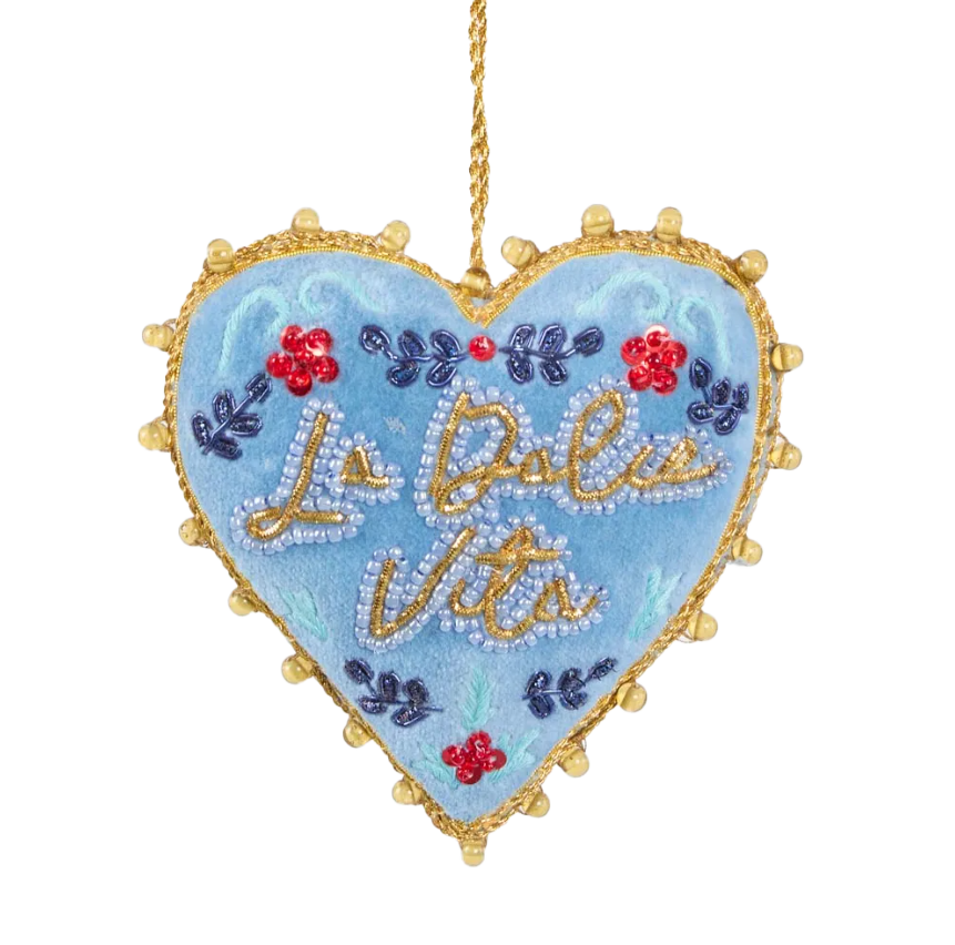 Introducing our deluxe La Dolce Vita hanging ornament, a heart-shaped delight. Adorned with carefully threaded beads and embroidery, it measures at 10cm making it the perfect size for any size tree. Reminiscent of Sicilian summers and festive freshness, this decoration creates the ultimate decorative paradox.