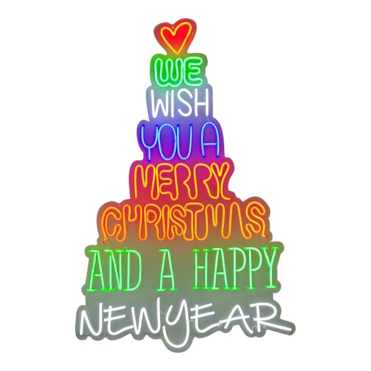 Let your holiday wishes light up the night with this eye-catching, 100cm neon sign! Perfect for those wanting to bring the Christmas cheer to their home or business, this festive sign will make any room sparkle and shine. Get festive and ho ho ho-liday ready!