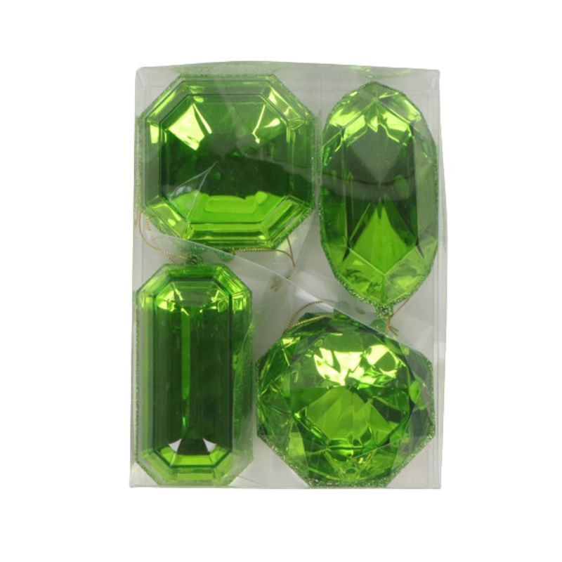 Add a vibrant touch to your decorations with this set of four lime green jewels in assorted shapes, each measuring between 10 and 12 cm. Perfect for enhancing festive displays or creative projects, these jewels bring a lively pop of color and sparkle to any setting. Their varied shapes offer versatile styling options to suit your unique decorating needs.