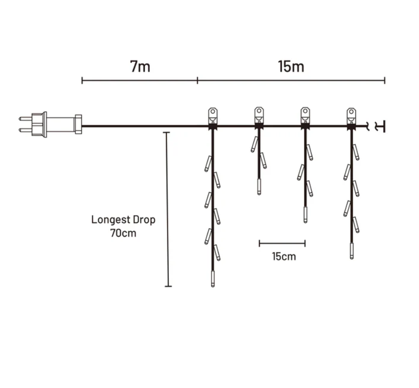 Create a festive atmosphere with our Connectable Icicle Blue & Cool White Lights. Connect up to 5 sets for a maximum of 75m, suitable for both indoor and outdoor use (keep the plug covered)! Lights have 8 functions and a memory hold. Functions include: Combination, In Waves, Sequential, SLO-GLO, Flash, Slow Fade, Twinkle and Steady On.