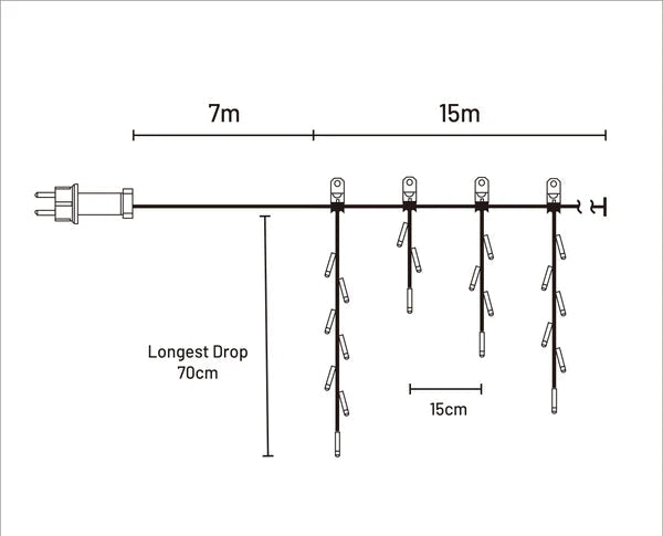Create a warm, festive atmosphere with our Connectable Icicle Warm White Lights. Connect up to 5 sets for a maximum of 75m, suitable for both indoor and outdoor use (keep the plug covered)! Lights have 8 functions and a memory hold. Functions include: Combination, In Waves, Sequential, SLO-GLO, Flash, Slow Fade, Twinkle and Steady On.