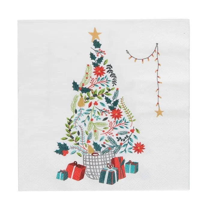 Elevate your holiday table setting with our Napkin Tree 20pk 33cm. These luxurious napkins feature a charming Christmas tree design adorned with presents, bringing a touch of festive charm to any occasion. These napkins are not only stylish but also durable, perfect for adding a touch of elegance to your celebrations.