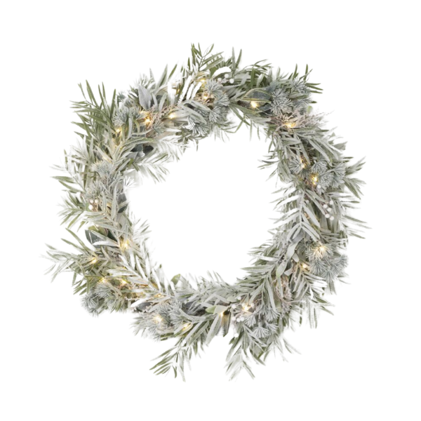 This stunning Christmas décor piece, the Native Wreath with Berries Frosty 60cm, is sure to bring elegance and sophistication to any festive season. The intricate intertwining of protected species pine branches juxtaposed with delicate clusters of berries is a perfect addition to any luxury home.