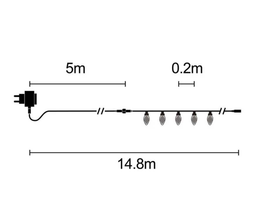 Brighten your holiday display with our Multi Colour Pinecone Connectable String Lights. Suitable for both indoor and outdoor use (keep the plug undercover), these lights feature memory hold and 8 different functions. Functions include Combination, In Waves, Sequential, SLO-GLO, Flash, Slow Fade, Twinkle and Steady On. Connect up to a 5 sets for a maximum length of 49m and 250 pinecone lights.