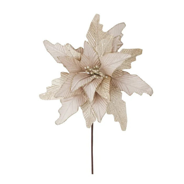 Adorn your home with the elegant and exclusive Poinsettia Champagne Glitter. The luscious poinsettia flower, shimmering with champagne glitter, adds a touch of sophistication to any room. Bring a touch of luxury and beauty to your space with this stunning 59cm decoration.