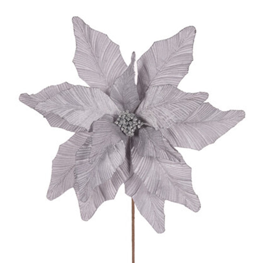 Elevate your festive decor with our Poinsettia Luxe Silver 35cm. This elegant artificial bloom captures the essence of Christmas with its shimmering silver petals and delicate structure. Perfect as a centerpiece, mantel accent, or tree ornament, this sophisticated poinsettia brings a touch of refined holiday charm to any space.