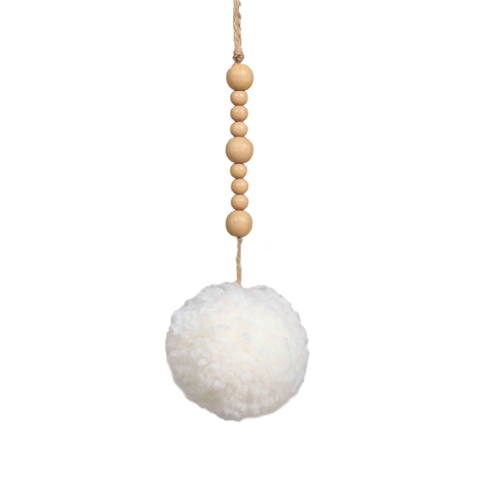Add a cosy touch to your space with this 18cm Pom Pom White Hanging Beads decoration. Featuring a soft white pom pom suspended from natural-coloured wooden beads, it brings a warm, natural charm to any room. Perfect for hanging on walls, doors, or Christmas trees, this ornament adds subtle texture and a gentle, inviting feel to your decor.