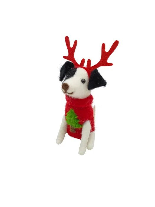 Get your furry friend in the holiday spirit with our Puppy Xmas Sweater Felt Hanging! This adorable 13cm decoration features a black and white pup sporting a festive red sweater, complete with a green Christmas tree and red antlers. Perfect for adding a touch of whimsy to your holiday decor.