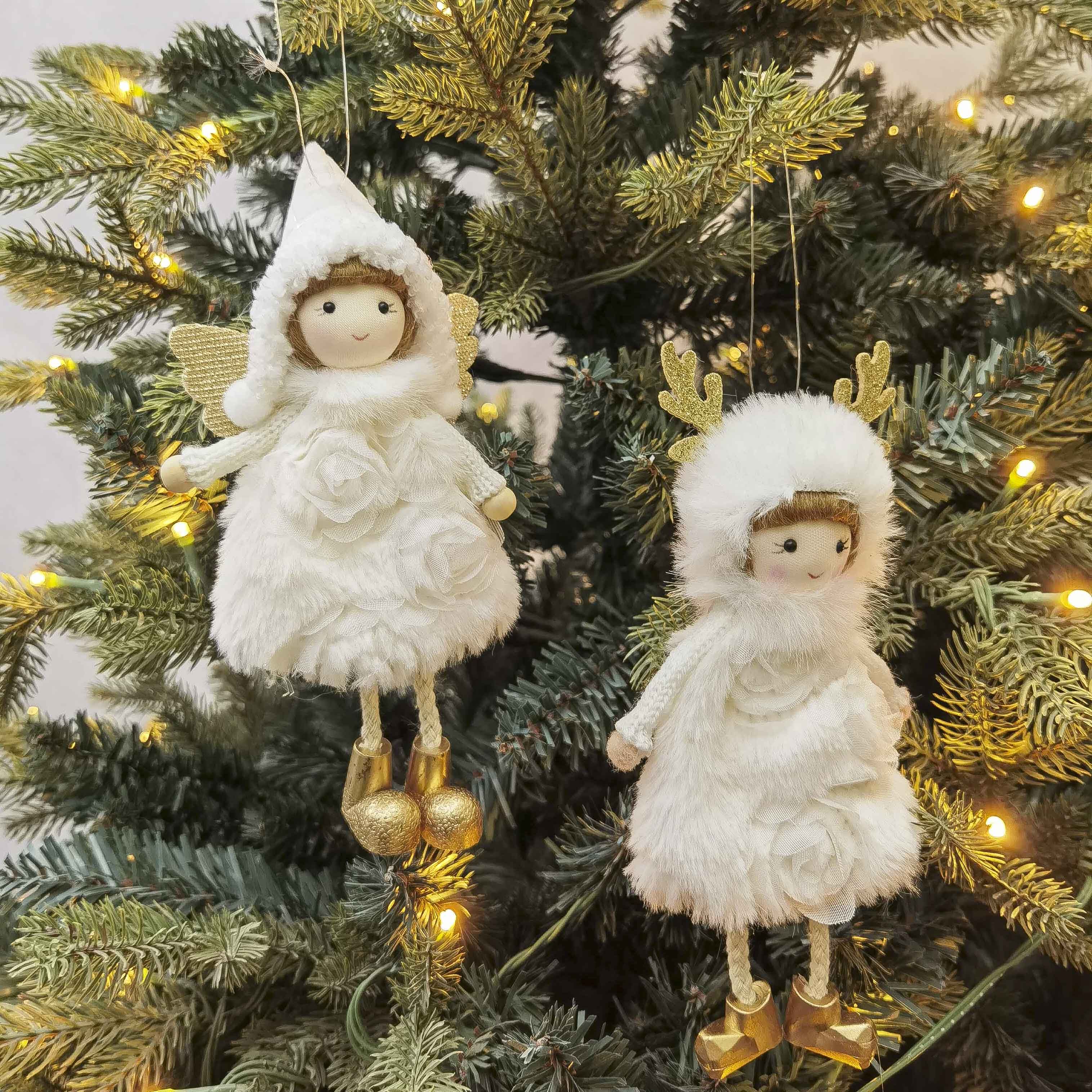 This charming 19cm hanging ornament features a sweet girl dressed in a fluffy white dress adorned with a delicate rose accent. She comes with a choice of shimmering gold wings or elegant gold antlers, adding a magical touch to your Christmas decor. Perfect for adding a cute and festive charm to your tree or holiday display.