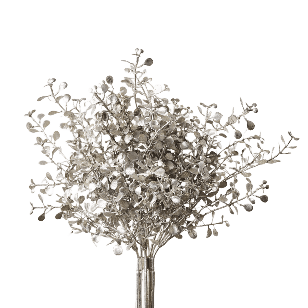 Add a festive and sophisticated touch to your seasonal decor with this Button Fern Bouquet. This 30cm spray fern is adorned with a subtle champagne glitter finish, making it perfect for adding a touch of sparkle or enhancing glamorous arrangements.