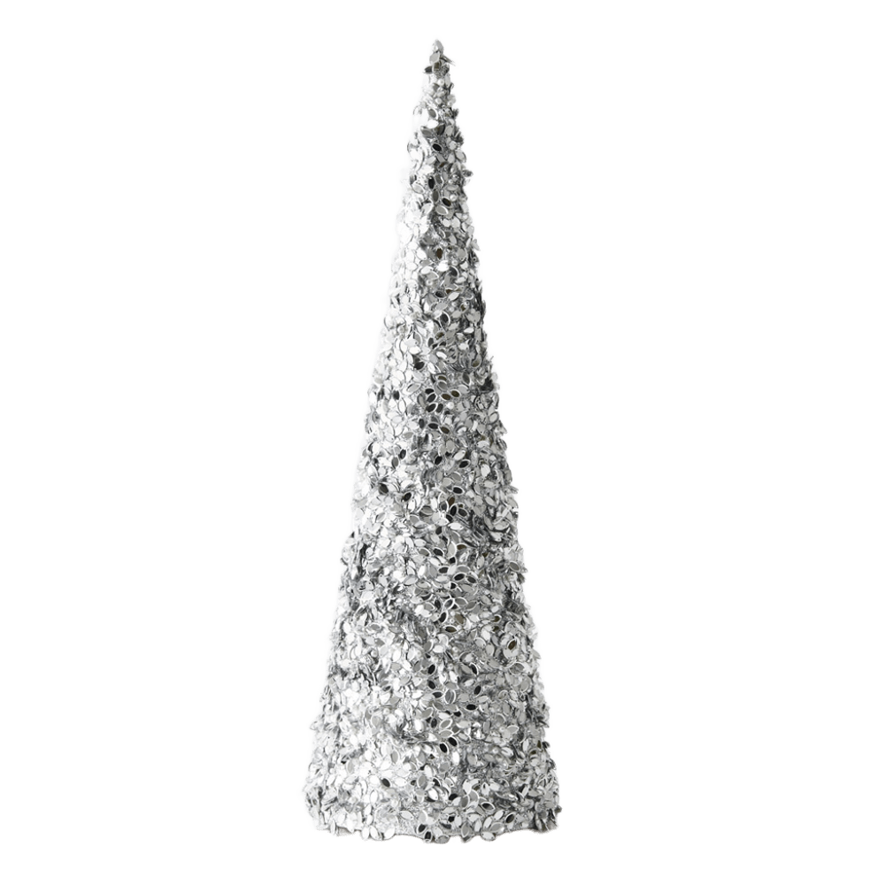 Behold our Silver Jewelled Cone Tree - the epitome of elegance. This stunning 45cm piece features a fusion of sequins, beads, and crystals, creating a dazzling effect that will light up any room. Also available in 30cm.