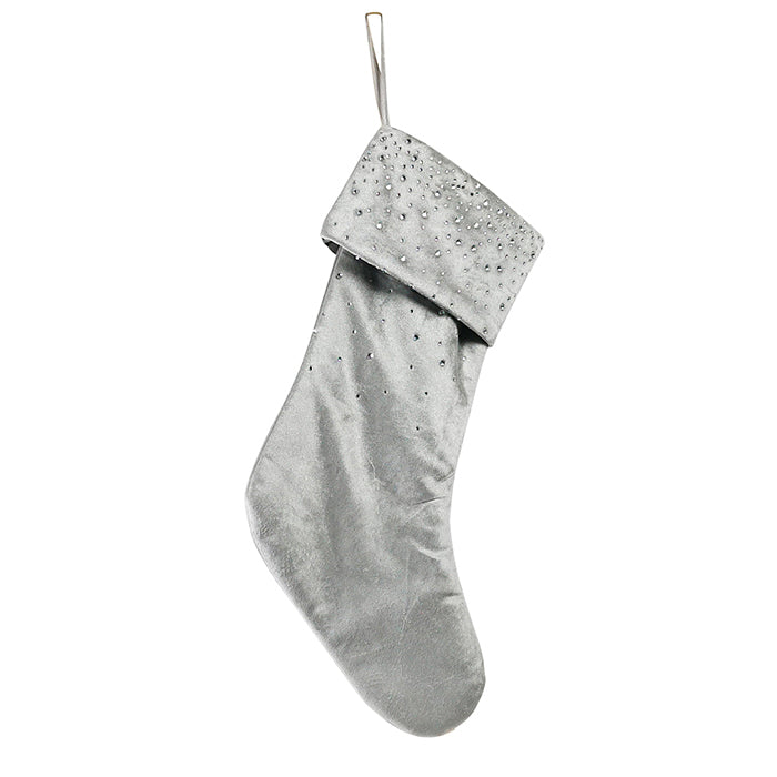 This 45cm Silver Velvet Stocking with Diamanté detailing makes the perfect gift or ornamental display over the fireplace. Make your display even more magnificent by hanging these stockings in a set of 3!