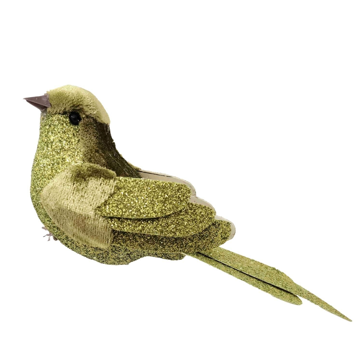 Elevate your foliage with this sparkling green glitter bird ornament. Measuring at 12cm, this festive decoration features a convenient clip-on attachment for secure placement on branches.